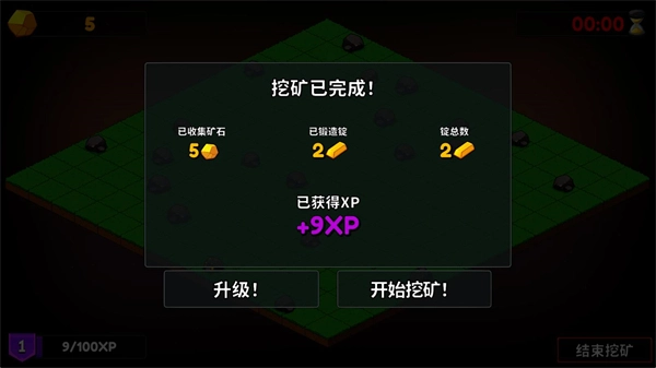 3、每次挖矿结束后,系统会依据获取的矿石数量兑换成相应的金块,同时玩家还能得到经验值。