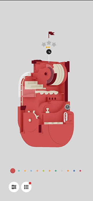 6、顺利通关后,顶部会出现红旗标志,底部的彩色图标可用于切换其他关卡。