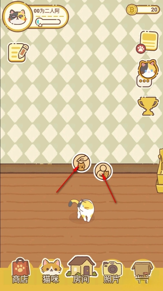 2、点击猫咪头上的按钮可以进行互动