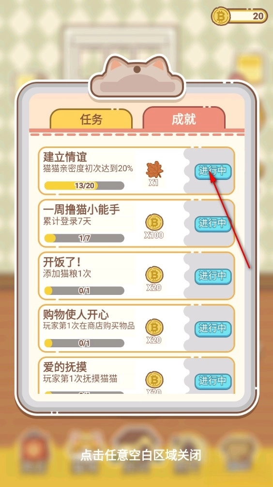 4、完成任务获得金币,金币可购买猫咪用品