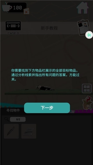 7、当所有物件都搜寻完毕后,即可开启调查模式,完成所有问题的解答即可通关。点击右上方区域可查看案件信息,若暂时无法想出答案,点击右下方区域就能获取提示信息。