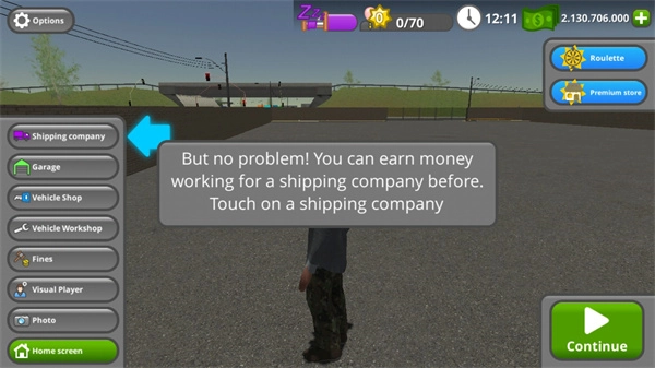 1、第一步,我们先打开公路司机这款游戏,接着点击左下角的play按钮;
