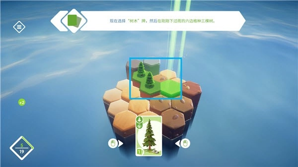 2、每当一块六边形格子变为绿色,玩家就能得到1点和谐值。达成里程碑后,地图范围会随之扩展,同时还能获取新的卡牌。