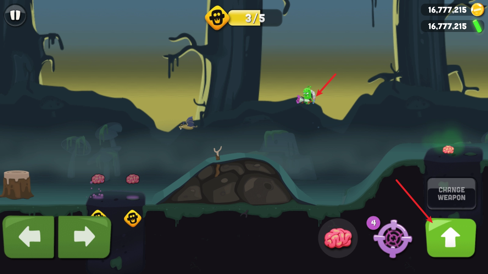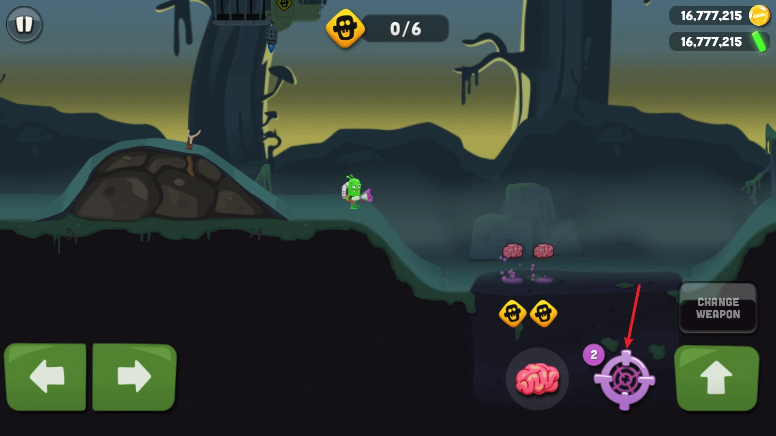 2、进入后,借助左侧的按钮进行移动,寻找合适的位置放置脑子,以此吸引僵尸现身。