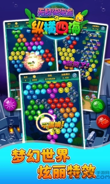 《无敌泡泡龙之纵横四海》巧妙融合经典泡泡龙玩法与宠物养成元素,玩家需操控弹射装置,发射缤纷多彩的泡泡,凭借精准的角度把控完成消除目标。游戏内不仅配备多样道具与萌趣宠物伙伴,助力玩家攻克各类难关,更设有别具一格的BOSS战模式,为传统玩法注入了更多竞技趣味。