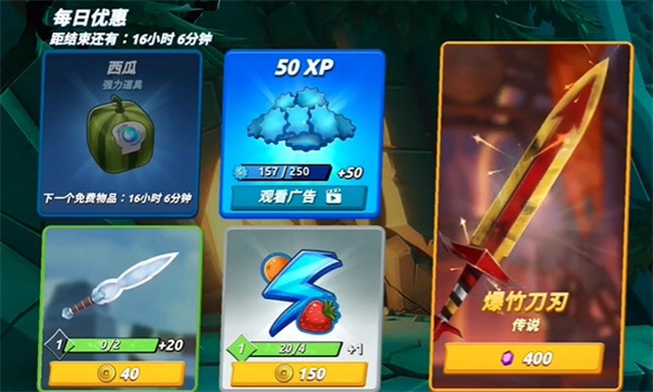 2、你可以自由组合刀刃与道具,并且持续强化它们,这样就能更顺畅地切开更多水果啦!