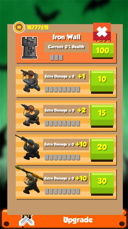 3、随着僵尸一波接一波地进攻,后续出现的僵尸数量会越来越多,这种情况下玩家可以优先给己方士兵升级;