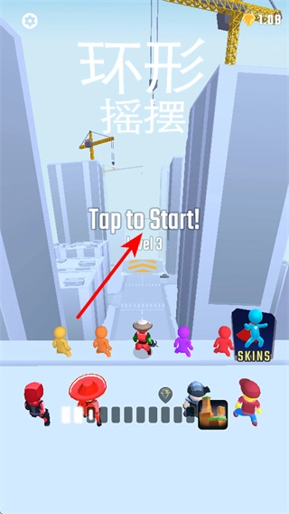 在游戏里,点击“Tap to Start”按钮就能开启环形摇摆挑战,这是进入游戏竞技环节的关键步骤,通过点击来操控角色,参与城市之间的竞速冒险。