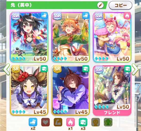 2、2-3张A以上的sr卡,选择时应更侧重于比赛加成效果以及所需技能的折扣等级