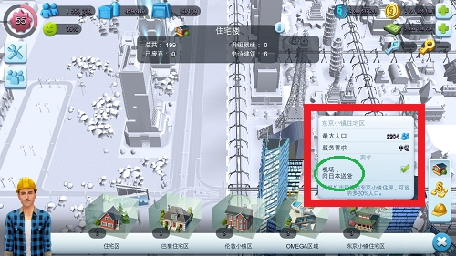 住宅是市民居住的场所,也是城市人口的主要承载地;资源建筑承担着各类建造与升级房屋所需材料的生产任务,为城市的快速升级发展提供保障;发展建筑则为市民提供公园、医疗、消防、治安等更多服务,从而提升市民的满意度。