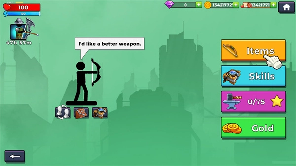 1、玩家打来游戏之后有着极为简单的新手教程,玩家只需要跟着游戏引导点击ltems。