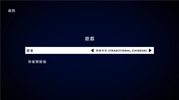3、在“LANGUAGE”语言设置栏处点击右箭头,选中中文选项,返回后就能把游戏语言设置成中文啦!