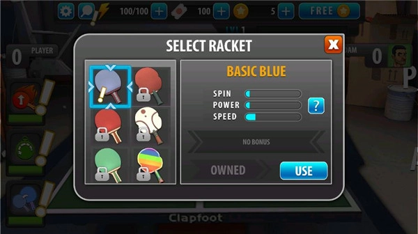 3、通过金币可以购买各种道具,还能购买新的球拍,