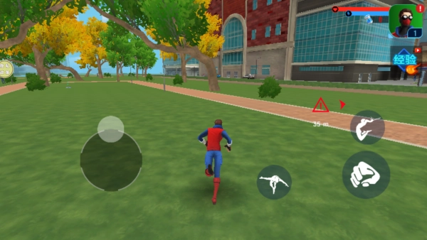 2、你可以发射蛛丝并巧妙结合跳跃和冲刺动作,实现在城市高楼间的高速移动与摆荡。