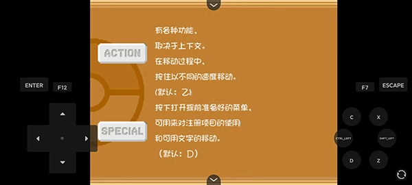 游戏操作说明如下:通过屏幕左下角的方向控制区域,可实现角色的移动,同时也能用于菜单项目的选择与浏览;“C”键承担确认功能,无论是选定选项还是与游戏内的角色、物品进行互动对话,都可通过此键完成;“X”键则主要负责退出操作,包括取消当前选择、退出特定模式,以及调出暂停菜单;“Z”键具备多重用途,在角色移动时按住该键,能让角色以不同的速度行进;“D”键的作用是打开预设的菜单界面,同时也支持文字内容的移动操作。