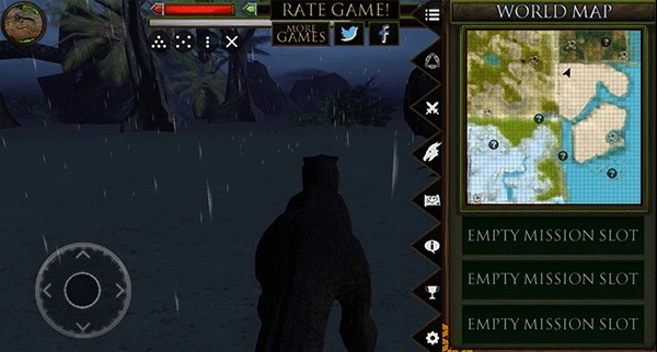 进入游戏后,玩家可通过虚拟方向键控制角色前后左右移动,右下角的按钮用于攻击敌人。