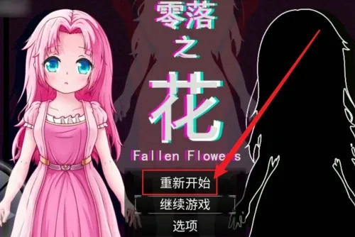 找到“零落之花”游戏程序并双击启动,待界面加载完成后,按照图示指引,先点击“重新开始”按钮即可进入游戏环节。