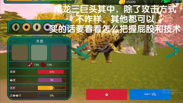 恐爪龙:可以理解为加强版的迅猛龙,一般在大型恐龙打斗的场景中会出现,新手玩家推荐选择这个角色作为开局的初始恐龙。