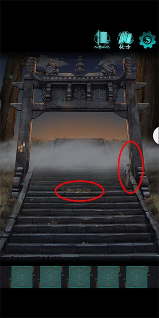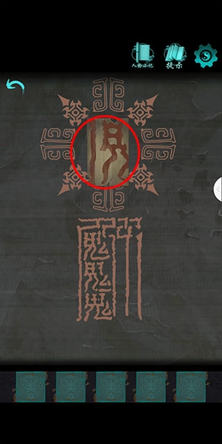 11、打开柜子,根据花瓶的线索,点击对应图案的骨灰盒。(花蕊数量代表点击次数) 12、拾取【天字活块】,将【天字活块】放入窗户凹槽,根据石碑的回文联线索,调整机关为【天连水尾水连天】,打开窗户得到【灯笼】。 13、将【灯笼】挂在架子,得到【钥匙】。 14、用【钥匙】打开房门。 15、打开柜子上的盒子,拾取【铜锁块】。