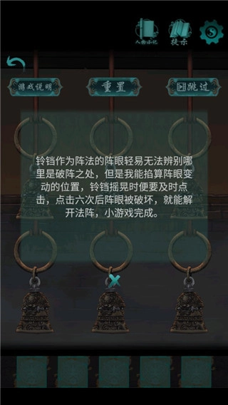 5、解密完成之后门中间就会出现铃铛,我们点击铃铛继续进行解密,当解密完成后就可以进入村中了
