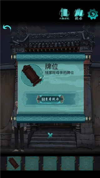 1、拾取【符咒】。 2、将【符咒】放入空缺位置, 3、依次点击摇晃的铃铛,完成小游戏。 4、根据4个图案的方向,调整旋钮。 5、将【牌位】放在祭桌,掀开黑布。