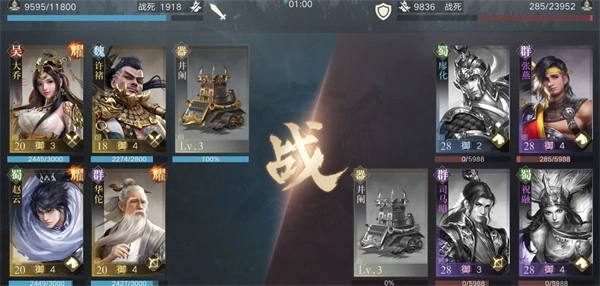 接下来要介绍的第二套用于前期恢复兵力、开拓领地的阵容配置是:赵云、大乔、于禁、卢植,这套组合总共需要14点御值。