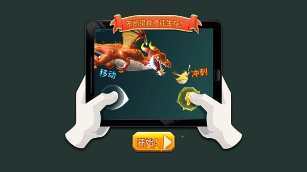 用左边的操作来控制移动方向,右边的操作负责冲刺;当操控龙移动时,需要用另一根手指触碰屏幕来触发冲刺动作。