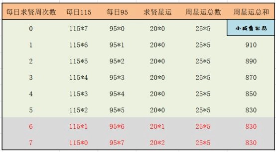 这样就可以算出每日可白嫖星运的两种情况: