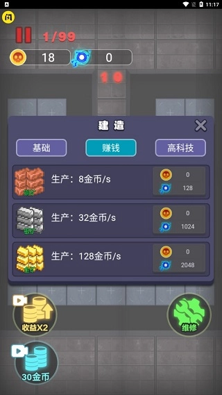 在经济类建筑物里,最该优先升级的是它——它不仅是最主要的经济来源,更是前期唯一的经济来源,而且其等级和门的等级相关联,每提升一级,每秒获得的金钱就会翻倍。