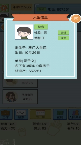 丰富人生体验:游戏融入了大量富有中国特色的细节与发展策略,玩家能沉浸式体验从童年点滴回忆、青春期的叛逆懵懂到步入职场后的拼搏奋斗等一连串人生片段。