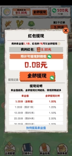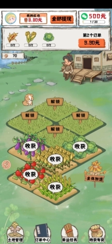 之前几批订单的优惠力度很大,能够迅速把它们处理完,借助全员加速功能就能缩短农作物的生长周期了。