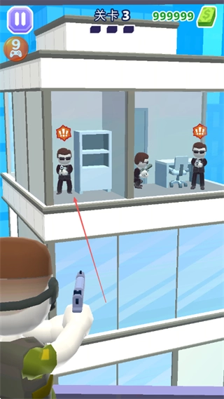 在第三关中,留意建筑内部敌人的分布情况,找准能同时击中多个敌人的连线轨迹,以此达成双杀乃至多杀,更高效地歼灭敌人。
