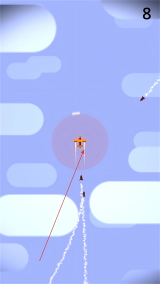 《躲避导弹的飞机(GoPlane)》是一款休闲飞行游戏,它着重考验玩家的即时反应能力和精准操控水平。在游戏中,你将驾驶一架灵活的战机,在广阔的天空中展开一场极限求生之旅。你需要时刻保持警惕,因为屏幕的各个方向都会有密集的导弹群高速袭来,只有通过灵活的走位和精准的预判躲避,才能不断延长自己的生存时间。每一次与导弹惊险的擦肩而过,都会让你感受到心跳加速的刺激;而一旦稍有疏忽,就会触发一场壮观的爆炸场面。