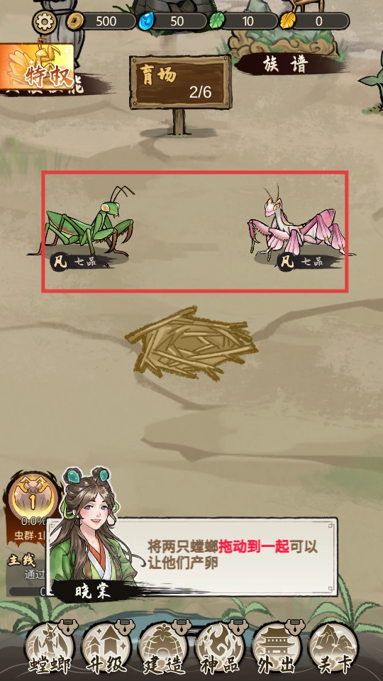 点击【开始游戏】按钮进入游戏,开启你的螳螂养成冒险之旅吧。