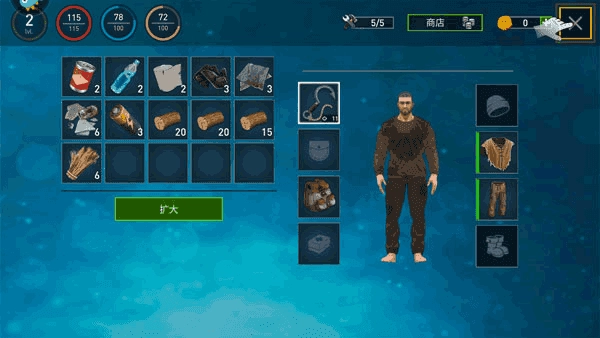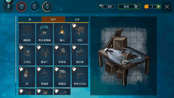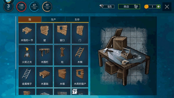 没有食物和水的话,人很快就会失去生命。刚开始的时候,可以用小木板从海里收集物资;到了后期,就需要制作更精良的装备了。