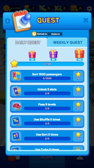 在成功接送所有乘客后,系统会自动为你办理通关手续,你将因此获得额外奖励。另外,你可以在主界面完成每日任务,以此来积累额外的资源和积分。