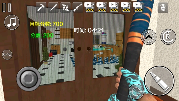 操控角色借助各类工具对家具、墙壁或天花板发起攻击,逐步破坏房屋的结构。
