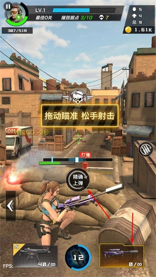 使用狙击枪这类武器时,你可以拖动进行瞄准,松开手指就能完成射击,从而精准命中敌人。