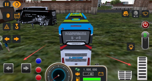 使用屏幕上的方向按键来操控公交车的转向,借助油门等按键来调节车速。当遇到复杂路况,或者靠近其他车辆、行人时,要缓慢地调整车速与方向,以保障安全。
