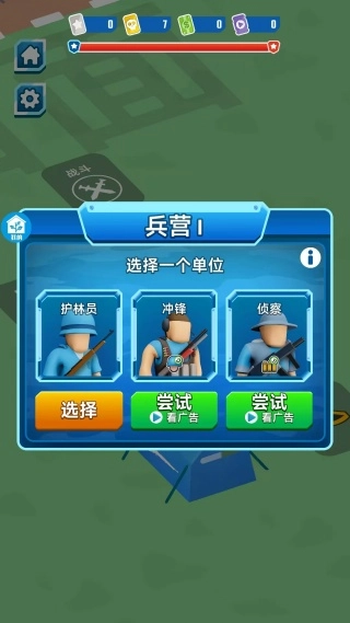 进入游戏后,第一步要创建兵营,接着挑选一个单位,像护林员、冲锋兵或者侦察兵都可以。