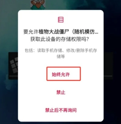 当弹出存储权限请求时,请点击【始终允许】或【仅在游戏内允许】选项。