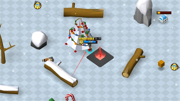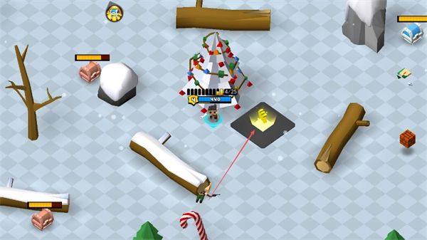 在雪地场景里,靠近发光的地方收集金币,积攒资源,增强自身的战斗能力。
