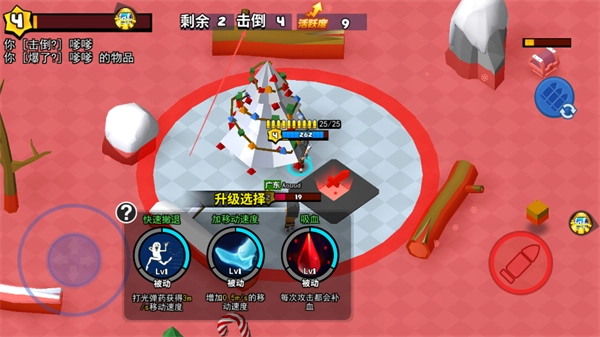 战斗时挑选快速撤退、位移连射、吸血这类升级技能,提升作战能力,以对付剩下的敌人。