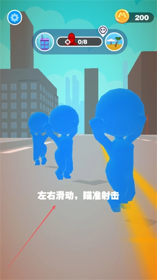 在屏幕上左右滑动来瞄准蓝色小人,通过练习射击操作,从而熟悉瞄准机制。