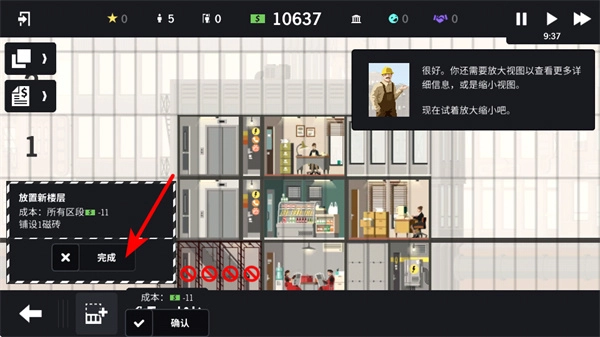 完成新楼层的放置操作后,放置确认是建筑流程中的关键环节,确认后新楼层即建设完毕,后续可开展设施添加或出租等工作。
