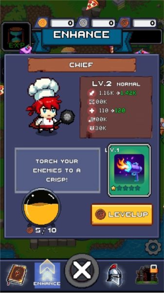 在专属界面使用金币进行强化,提升整体战力。
