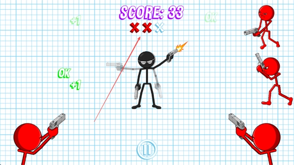 精准瞄准红色火柴人进行射击,命中后会弹出“good”之类的评价提示,还能获取额外分数,助力你快速积累总分。
