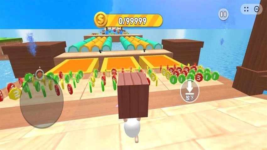 还会提供一些道具,比如可以拾取箱子,能把箱子投放到糖豆上以快速完成收集,也可以随时放下当前持有的箱子。