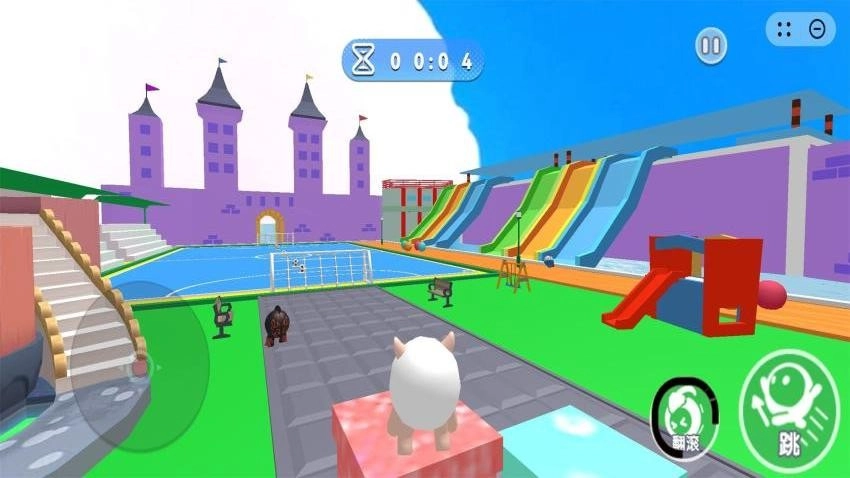 在玩游戏时,你可以手动点击翻滚和跳跃按钮,借此避开各种道具,还能快速翻滚一段距离。