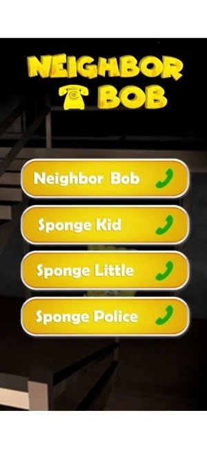 《海绵宝宝邻居》(SpongeNeighbor)是一款魔性又沙雕的海绵宝宝主题游戏。逗趣可爱的海绵宝宝会找上门来,还会不停地给你打电话——千万小心别被他发现!逃跑时记得向警察呼救,游戏采用逼真的3D画面和精致的角色建模,你能在被海绵宝宝看到前成功逃脱他的视线吗?